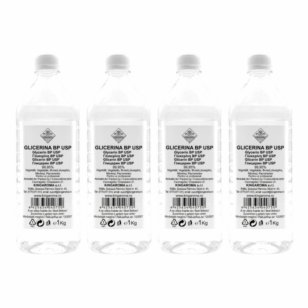 Glicerina vegetală 4KG KING Aroma este o materie primă de grad farmaceutic, recunoscută pentru proprietățile sale de hidratare, vâscozitate și stabilitate.