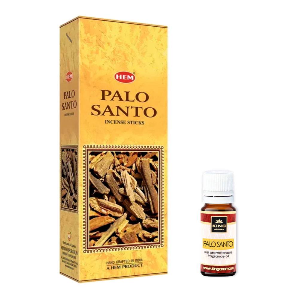 Pachet Promo: 120 Bețișoare Parfumate HEM Palo Santo + Ulei Aromaterapie Palo Santo KING Aroma, 10ml