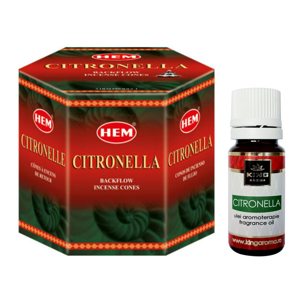 Pachet 40 Conuri parfumate Backflow HEM Citronella si Ulei aromaterapie Citronella Kingaroma, 10 ml
