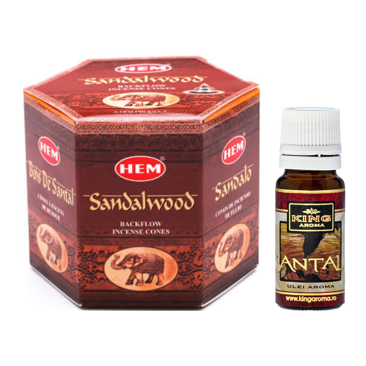 Pachetul contine 40 Conuri parfumate Backflow HEM Santal si un Ulei aromaterapie Santal Kingaroma, 10 ml