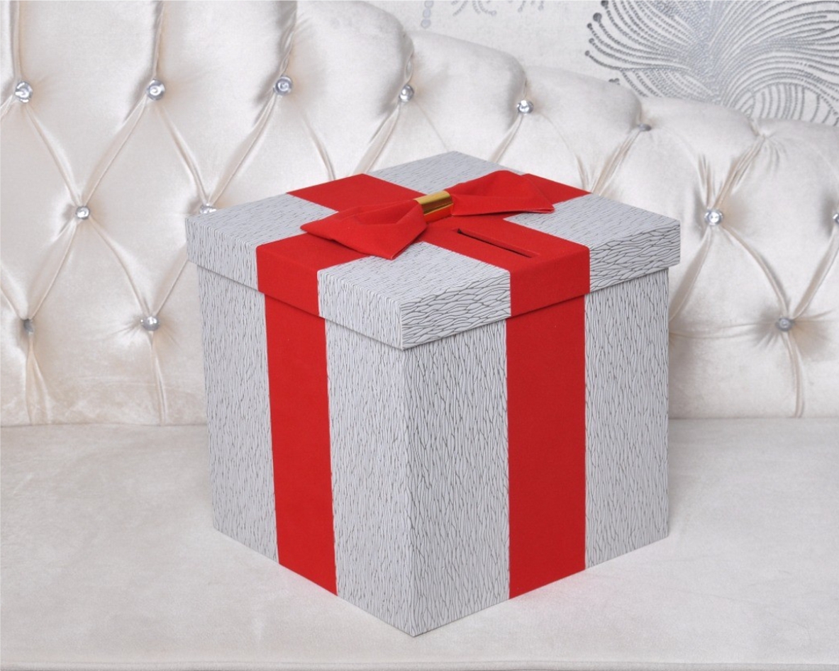 Material: MDF de 4 mm, învelit în tapet alb/gri de cea mai bună calitate și fundă de catifea roșie.