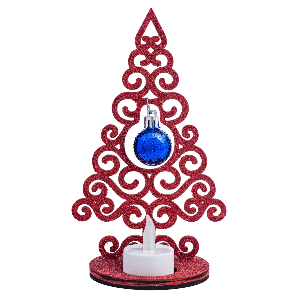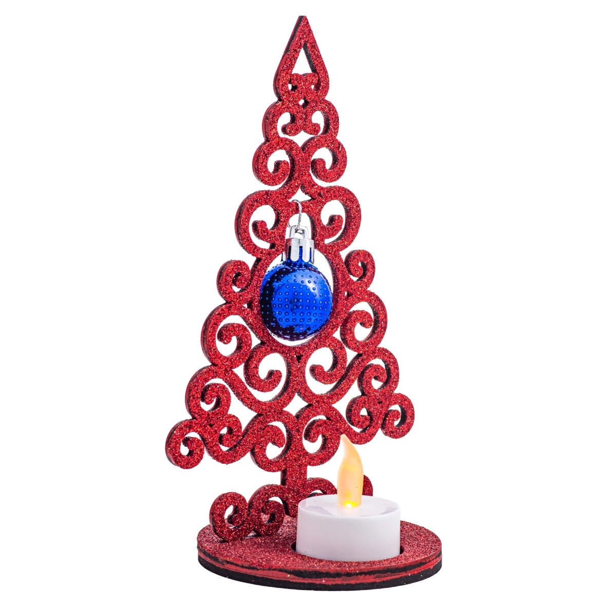 Braduț glob mic din MDF cu lumânare, glitter Roșu