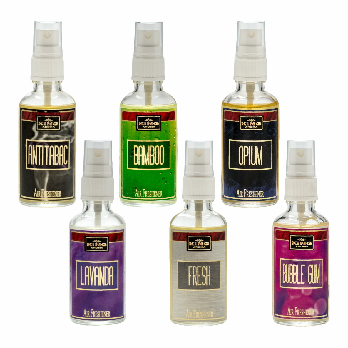Pachet 6 Odorizante auto Kingaroma: Antitabac, Bamboo, Bubble Gum, Fresh, Lavanda, Opium, 50 ml
