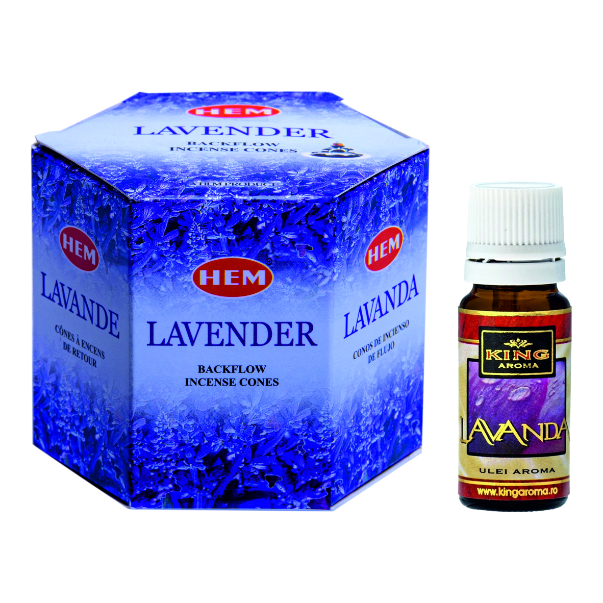 Pachetul contine 40 Conuri parfumate Backflow HEM Lavanda si un Ulei aromaterapie Lavanda Kingaroma, 10 ml