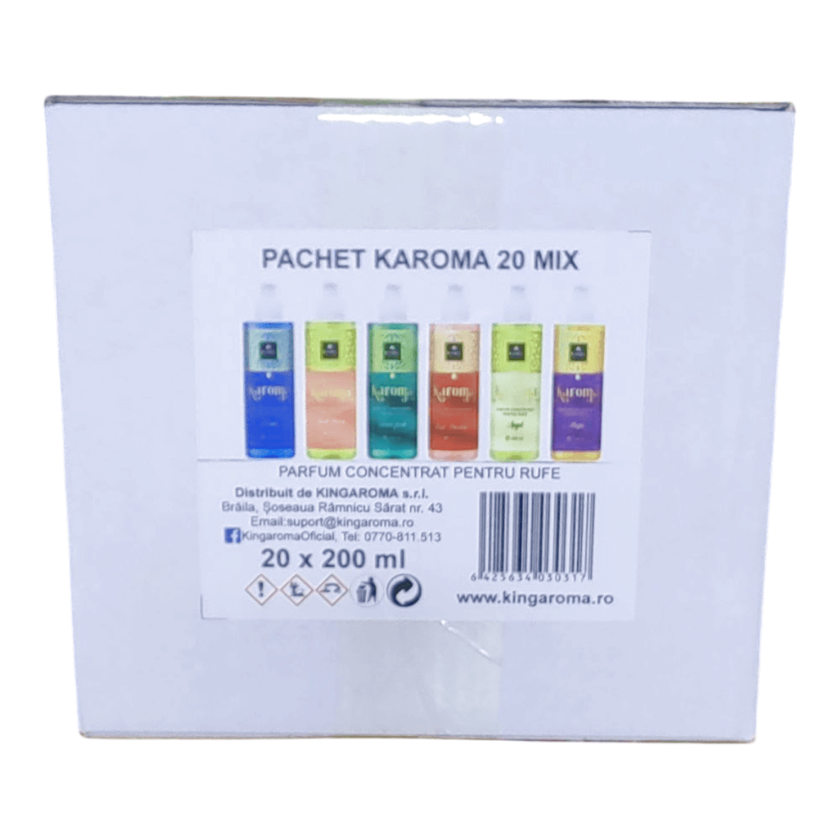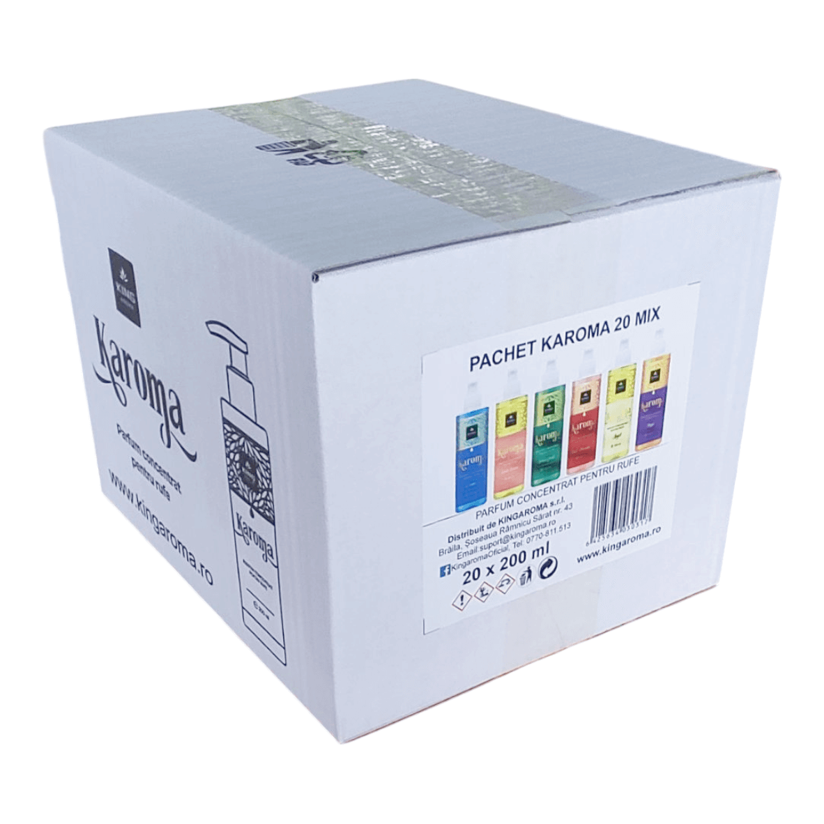 Pachet de 20 parfumuri concentrate pentru rufe, configurabil în orice combinație din 6 arome Karoma. Potrivit pentru magazine, revânzători sau uz personal. Ambalaj profesional, preț avantajos!