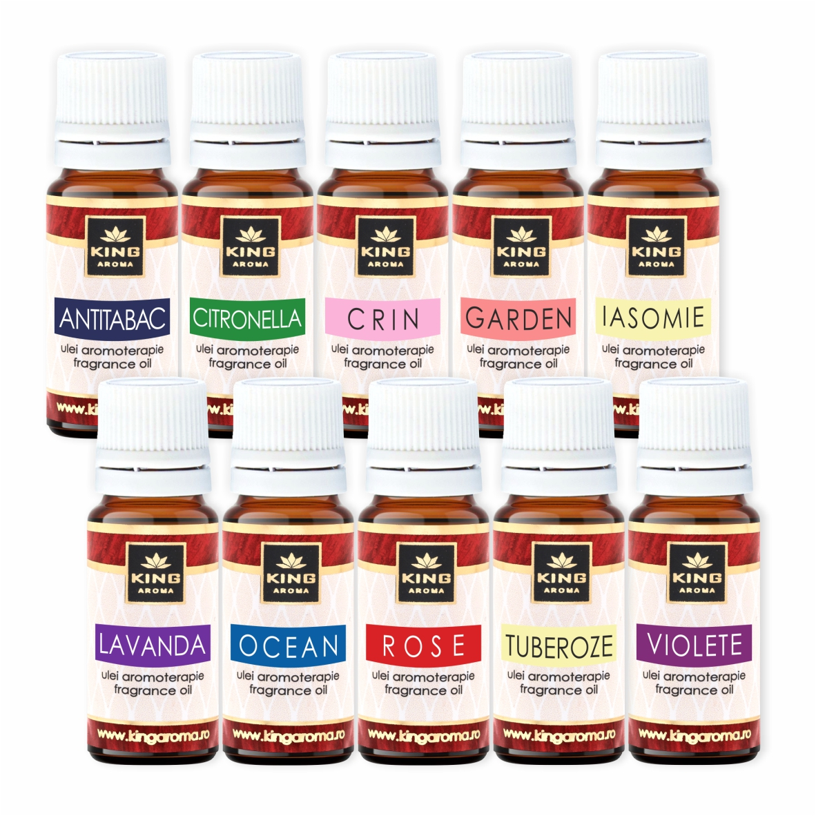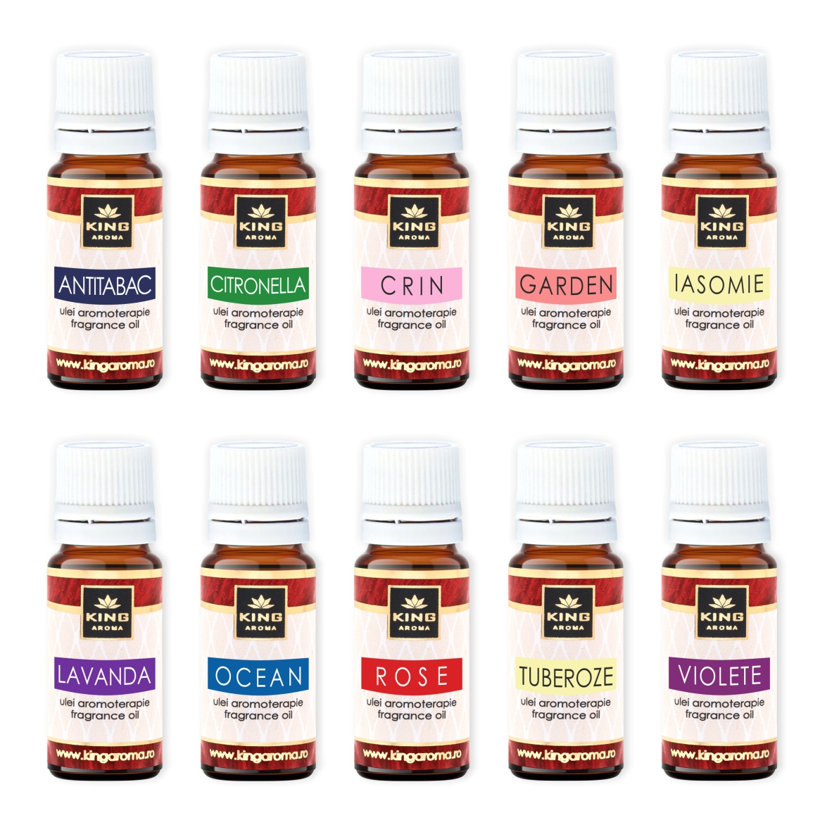 Conține 30 bucăți de uleiuri aromaterapie 10 ml arome de vară, căte 3 bucăți din urmatoarele arome: Antitabac, Citronella, Crin, Garden, Iasomie, Lavanda, Ocean, Rose, Tuberoze, Violete.