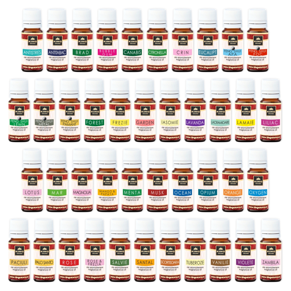 Produsele sunt marca KING Aroma, marcă înregistrată OSIM, comercializată pe piața din România prin magazin propriu, marketplace-uri și distribuție directă. Uleiurile sunt produse și ambalate în România, în unitatea noastră, ceea ce permite controlul calității și livrarea rapidă.