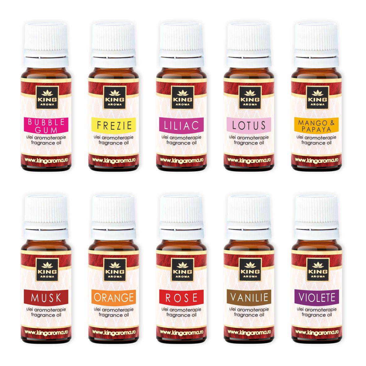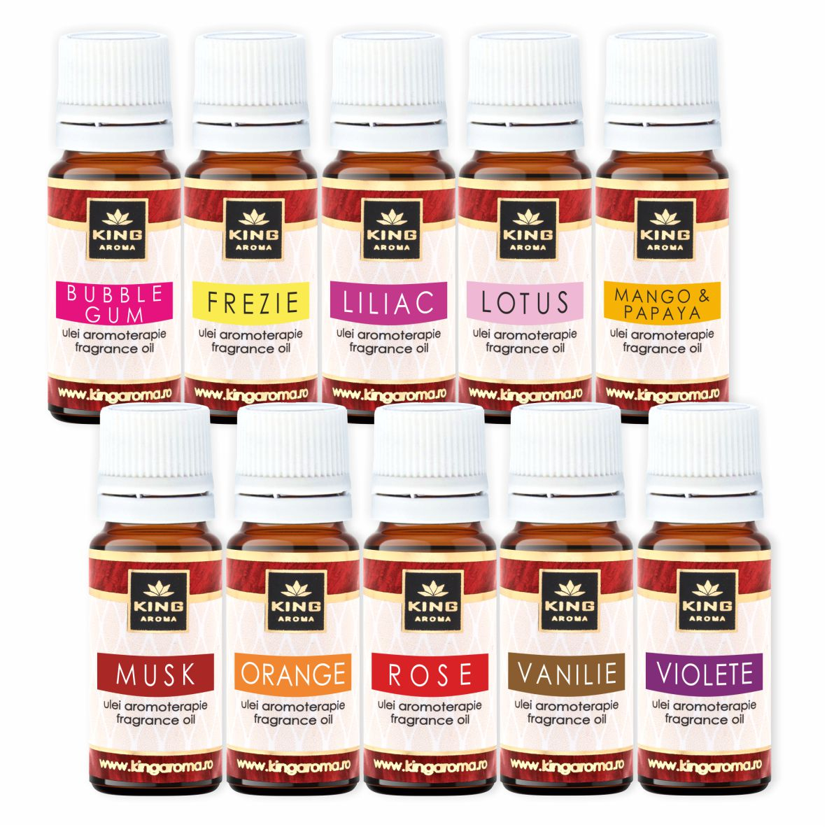 Conține 30 bucăți de uleiuri aromaterapie 10 ml arome dulci, cate 3 bucati din urmatoarele arome: Bubble Gum, Frezie, Liliac, Lotus, Mango&Papaya, Musk, Orange, Rose, Vanilie, Violete.