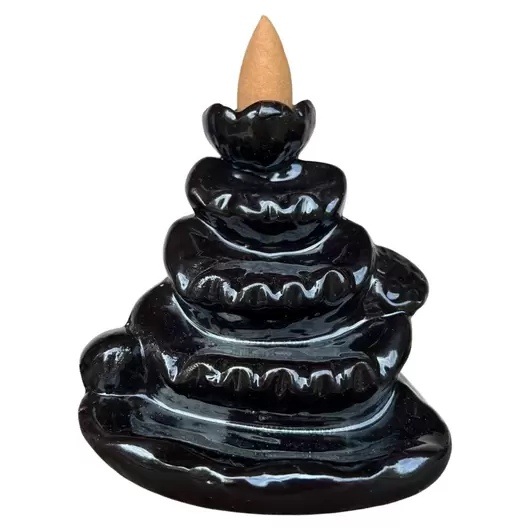 Suportul pentru conuri parfumate Backflow Champa creează un spectacol vizual elegant în timpul arderii conurilor aromate. Fumul curge în jos în trepte, formând o cascadă de fum parfumat care transformă orice spațiu într-un loc de relaxare și armonie.