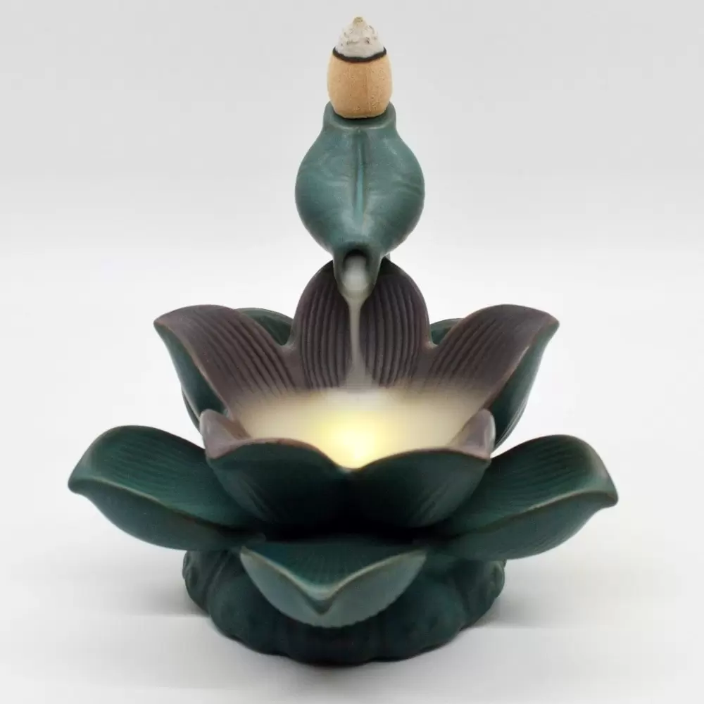 Suport conuri parfumate backflow, Lotus Light cu LED