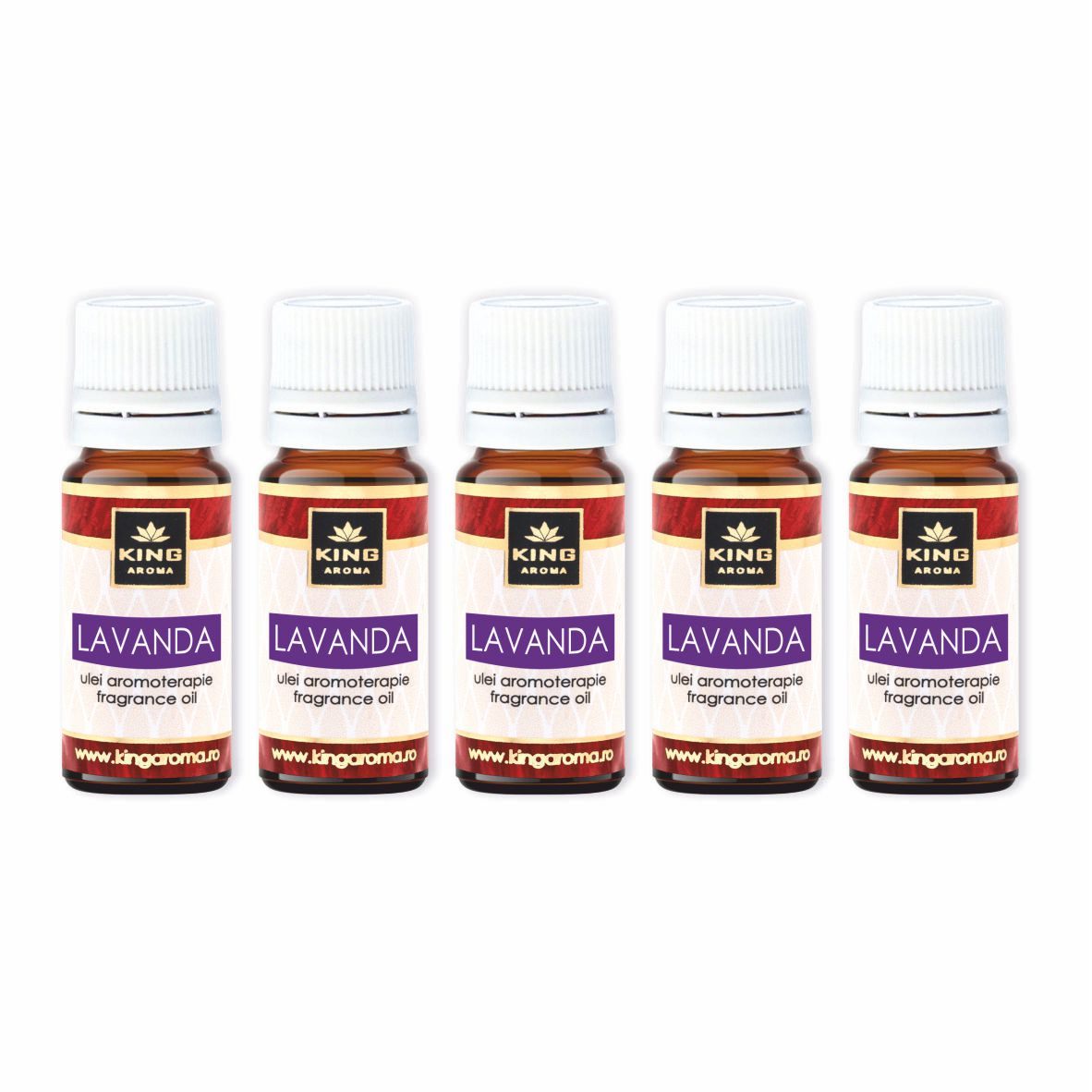 Pachet 5 x Ulei Parfumat Aromaterapie LAVANDĂ, KING Aroma – Set Rezervă pentru Relaxare Profundă, Somn Odihnitor și Liniște